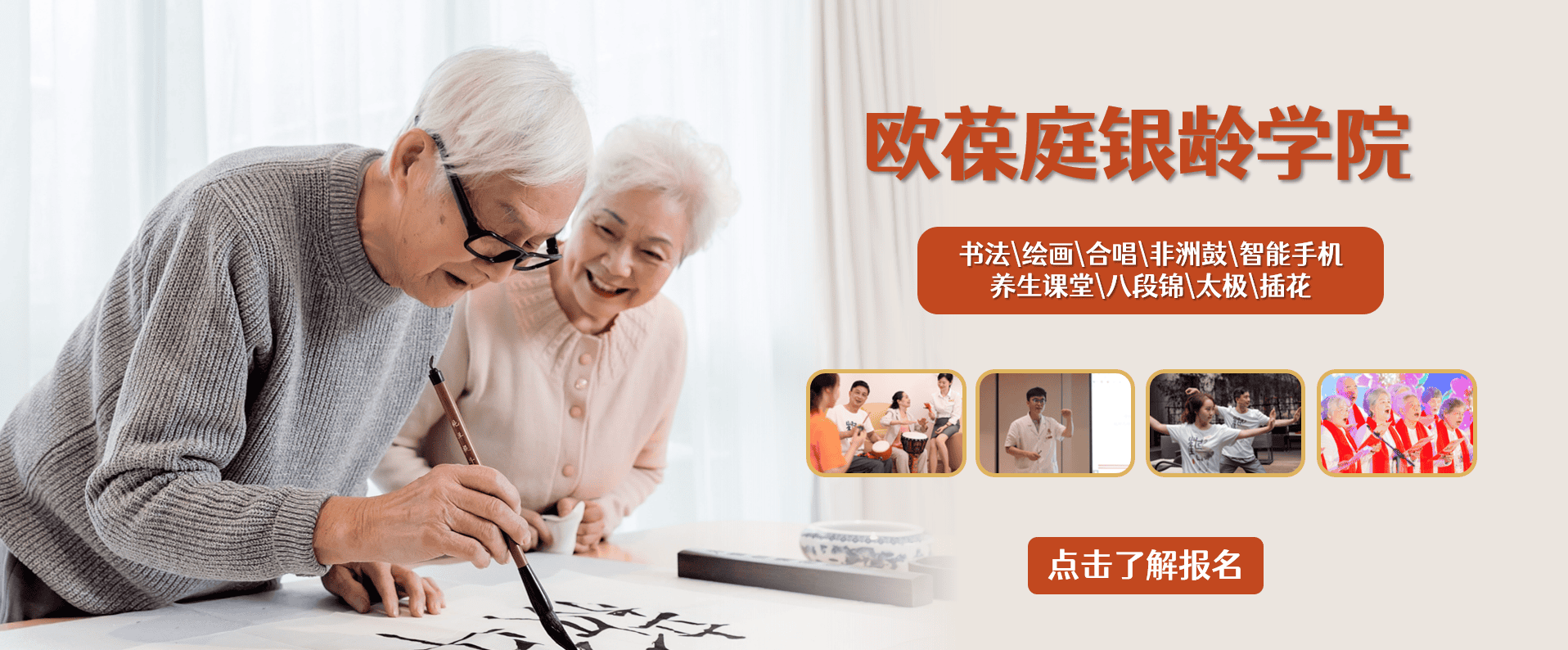 “文化养老”是一种能体现传统文化与当代人文关怀的养老方式。它是以老年人的物质生活需求基本得到保障为前提,以满足精神需求为基础,以沟通情感、交流思想、拥有健康身心为基本内容,以张扬个性、崇尚独立、享受快乐、愉悦精神为目的的养老方式,具有广泛性、群体性、互动性、共享性等特点。 经过大家的探索与努力,我们在欧葆庭养老机构设立老年大学,即“欧葆庭银龄学院”,以老年人需求为特色,同时融入社会时尚与潮流文化。