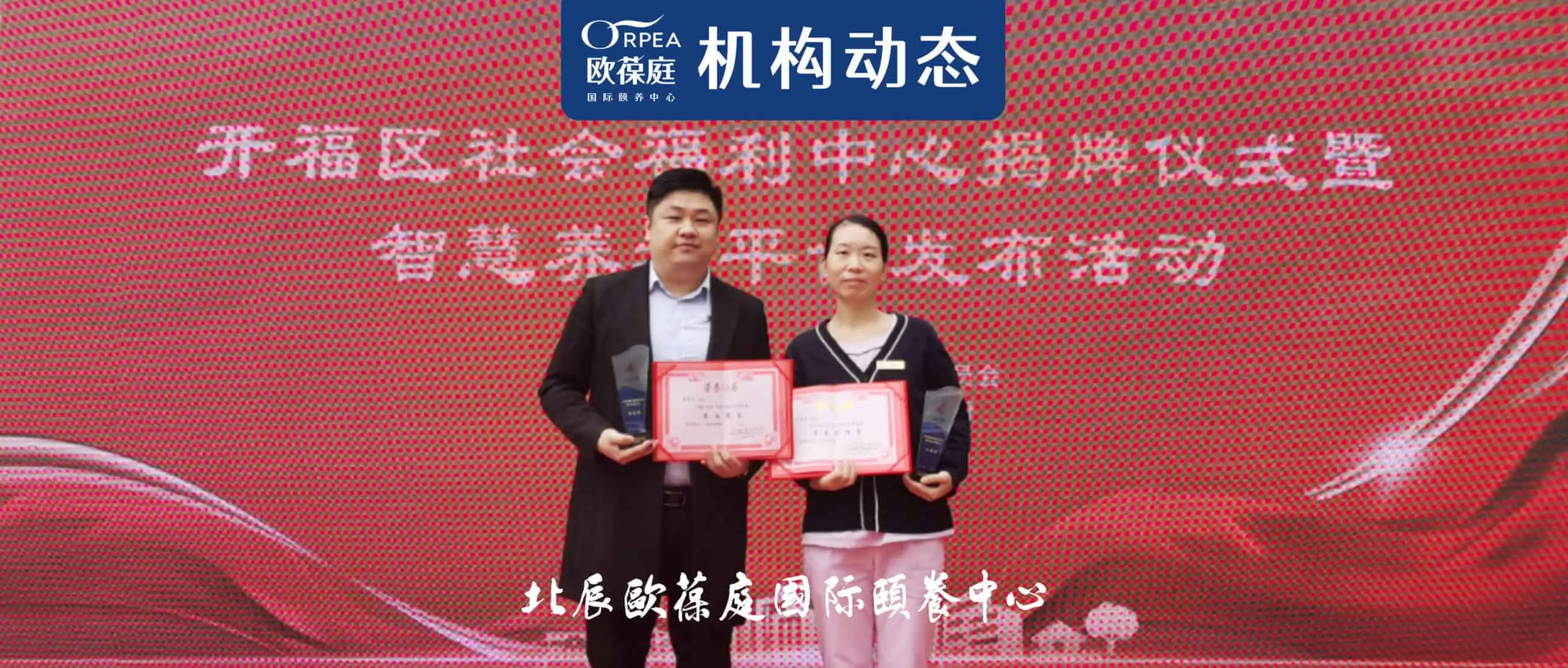 11月19日上午,长沙市开福区社会福利中心揭牌暨智慧养老平台发布会顺利召开,湖南省民政厅、长沙市政府等各级领导莅临现场,并为优秀养老服务工作者颁发奖项。长沙北辰欧葆庭国际颐养中心两位同事荣获“最佳院长”、“最美护理员”大奖。