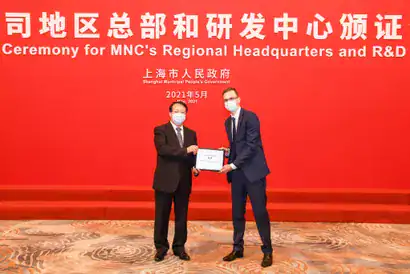 上海举行跨国公司地区总部及研发中心颁证仪式,欧葆庭中国获颁证书