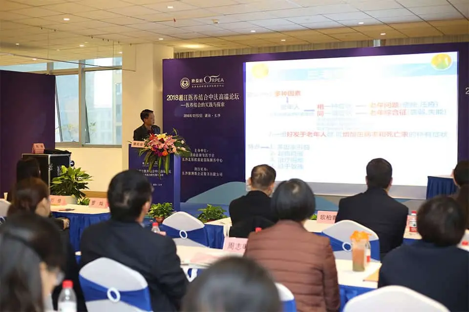 医疗和养老关乎着百姓福祉。12月2日上午,由湖南省康复医学会、长沙北辰欧葆庭国际颐养中心主办、长沙康博斯会议服务有限公司承办的“2018湘江医养结合中法高端论坛”在长沙北辰欧葆庭国际颐养中心举行。此次论坛围绕当前医养结合工作中存在的主要问题、难题、创新思路等作专题报告并进行现场交流,将进一步推动我省医养结合产业发展,助推我省以国际的顶尖养老服务水平,全面提升互相老龄人生活品质与健康指数,打造健