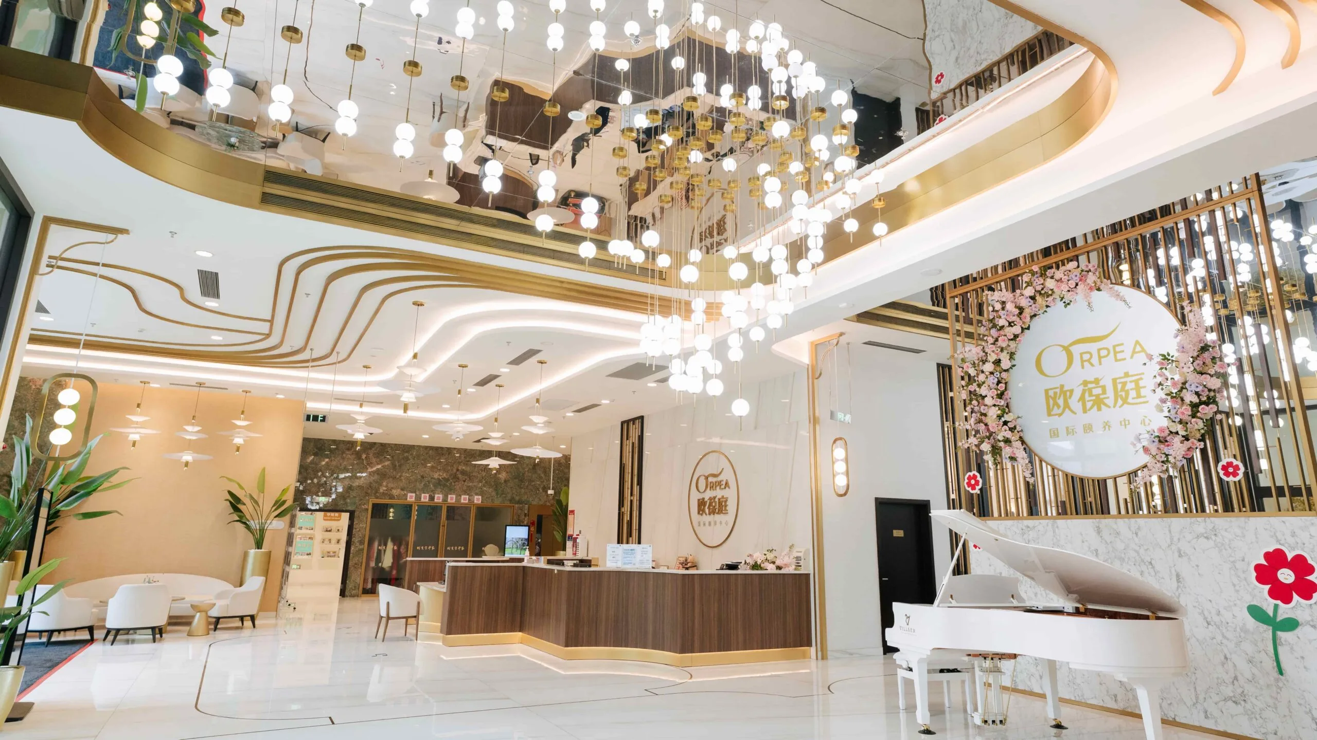 上海欧葆庭顾村国际颐养中心毗邻以樱花著称的宝山顾村公园,周边环境开阔优美,户外花园芳草如茵,建筑主体独特亮眼,红墙白窗风格典雅。颐养中心2022年获得LEED绿色建筑金级认证,为长辈们提供生态环保、自然和谐的居住环境。颐养中心共设有200多个房间,包括单人间、双人间以及VIP套间等不同房型可供选择。建筑内公共区域丰富,包括餐厅、咖啡厅、书画室、KTV、电影院等生活娱乐设施,以及医务室、康复室、水疗区、数字化康复设备等专业健康设施。2023年5月,颐养中心正式开业。