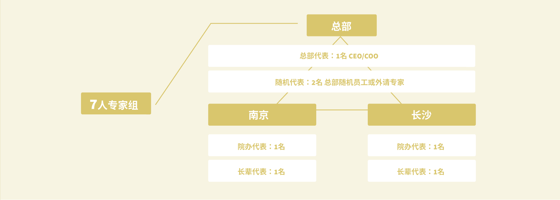 专家组总票数=机构数*各机构院办代表1位+机构数*各机构老人代表1位+总部代表1位+2随机代表(总部随机员工或外请专家)根据最终得分排名。